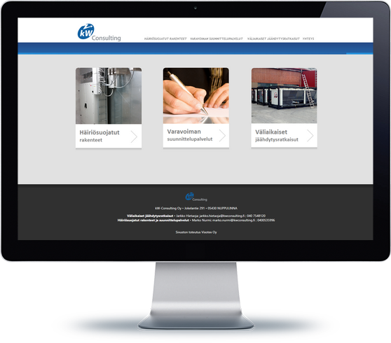 kW-Consultingin palveluihin kuuluvat häiriösuojatut rakenteet, varavoiman suunnittelupalvelut ja väliaikaiset jäähdytysratkaisut. Suunnittelimme selkeän, käyntikorttimaisen sivuston, jossa esitellään lyhyesti palvelut ja yhteyshenkilöt. Sivuston toteutimme Adoben Dreamweaverilla. Lisäksi olemme tehneet muuta markkinointimateriaalia kuten käyntikortit ja kuukausittaiset uutiskirjeet.